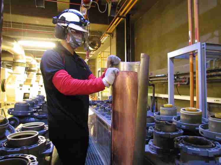 云顶国际8588yd将废弃物转化成有效的工业或民生原物料,,,图为废铜液淬炼后再制成纯度极高的铜管